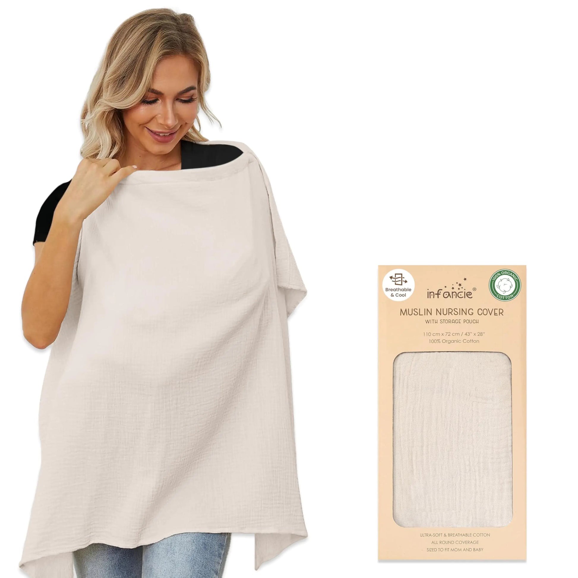 Baby Organic Cotton muslin nursing Ultimate Comfort for You-Your Baby: Our muslin nursing cover made from 100% organic cotton is lightweight breathable and soft. This breastfeeding cover ensures you and your baby stay cool and comfortable during feeding providing the comfort you deserving cover gift box set Discreet-Versatile Coverage: