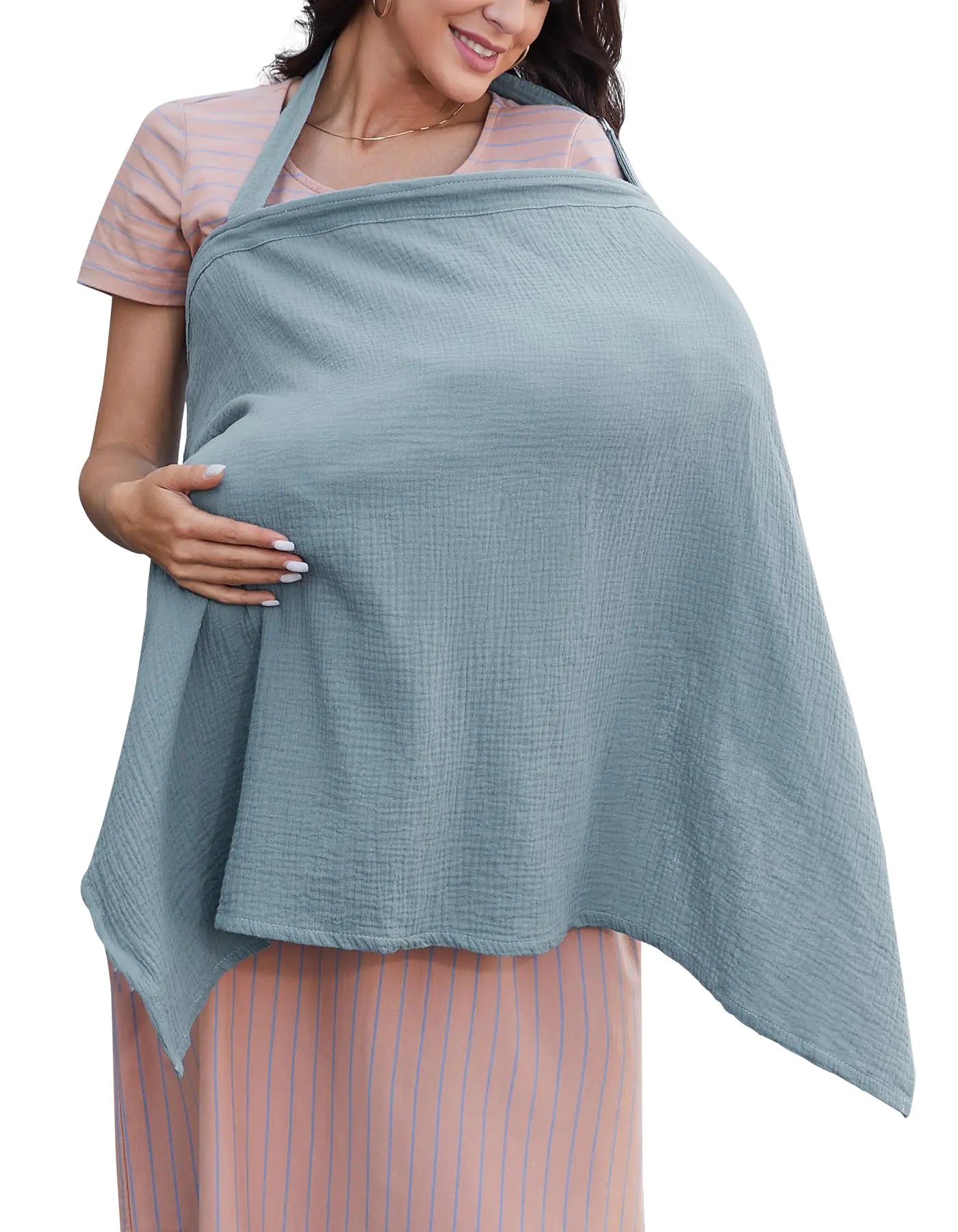 [【BREATHABLE AND COMFORTABLE】- Crafted from high-quality muslin cotton fabric this nursing cover ensures excellent breathability and comfort for both mothers and babies. The lightweight material keeps you and your little one cool and cozy making breastfeeding a pleasant experience even in warm weather. 【OPTIMAL PRIVACY】- Offering ample coverage this nursing cover provides a discreet and private space for breastfeeding in public. Mothers can nurse confidently without concerns about onlookers ensuring a stress-free and comfortable feeding experience for both mom and baby. 【INNOVATIVE DESIGN WITH VERSATILITY】- The nursing cover features an innovative arch shape neckline promoting airflow and facilitating eye contact with your baby during breastfeeding. Its versatile design extends its usability beyond breastfeeding doubling as a stroller cover for added convenience on the go. 【ADJUSTABLE STRAPS FOR PERFECT FIT】- Equipped with neck and back adjustable straps this breastfeeding cover functions like an apron allowing mothers to customize the fit for maximum comfort. The secure straps ensure that the cover stays in place providing a secure and private breastfeeding space. "【THOUGHTFUL BABY SHOWER GIFT】- Designed in gender-neutral colors this nursing cover makes for a considerate and practical baby shower gift. Its essential features and stylish design make it a valuable addition to any moms breastfeeding essentials kit offering both comfort and convenience."]